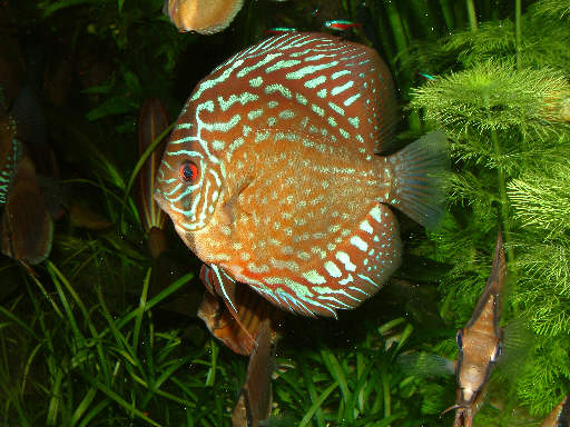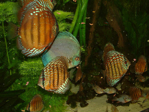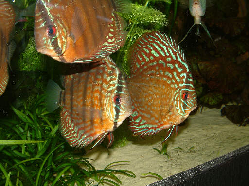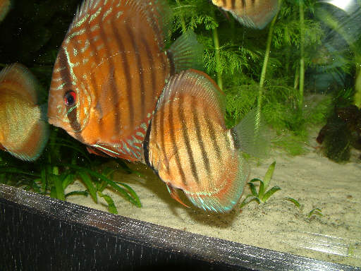 Einjährige Wildfangnachzucht, gekauft unter dem Handelsnamen "Madeira Red", die Großeltern sollen aus dem Rio Ica stammen. Wie auch immer, es sind sowohl durchgezeichnete als auch mehr flächig braunrote Tiere dabei. |